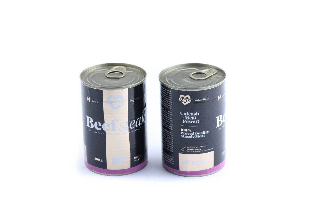 - Charakteristika: Konzerva pro psy Hovězí steaky je 100% přírodní bez konzervačních látek a ochucovadel. Obsahuje jen maso ve formě kousků hovězí svaloviny a vyšší podíl hovězího tuku. Louie Hovězí steaky je vhodná potrava i pro alergické psy, neboť obsahuje jen jeden druh masa a žádnou přísadu s obsahem lepku.