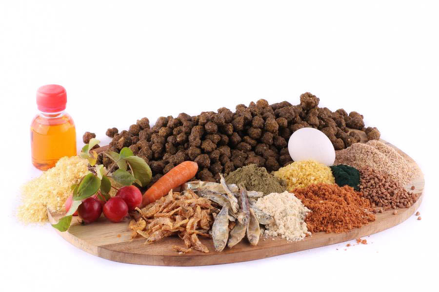 Celkem máme ve směsi: 82 % živočišných surovin, včetně pivovarských kvasnic a živočišných tuků, 14 % rostlinných surovin, 4 % ostatních surovin.