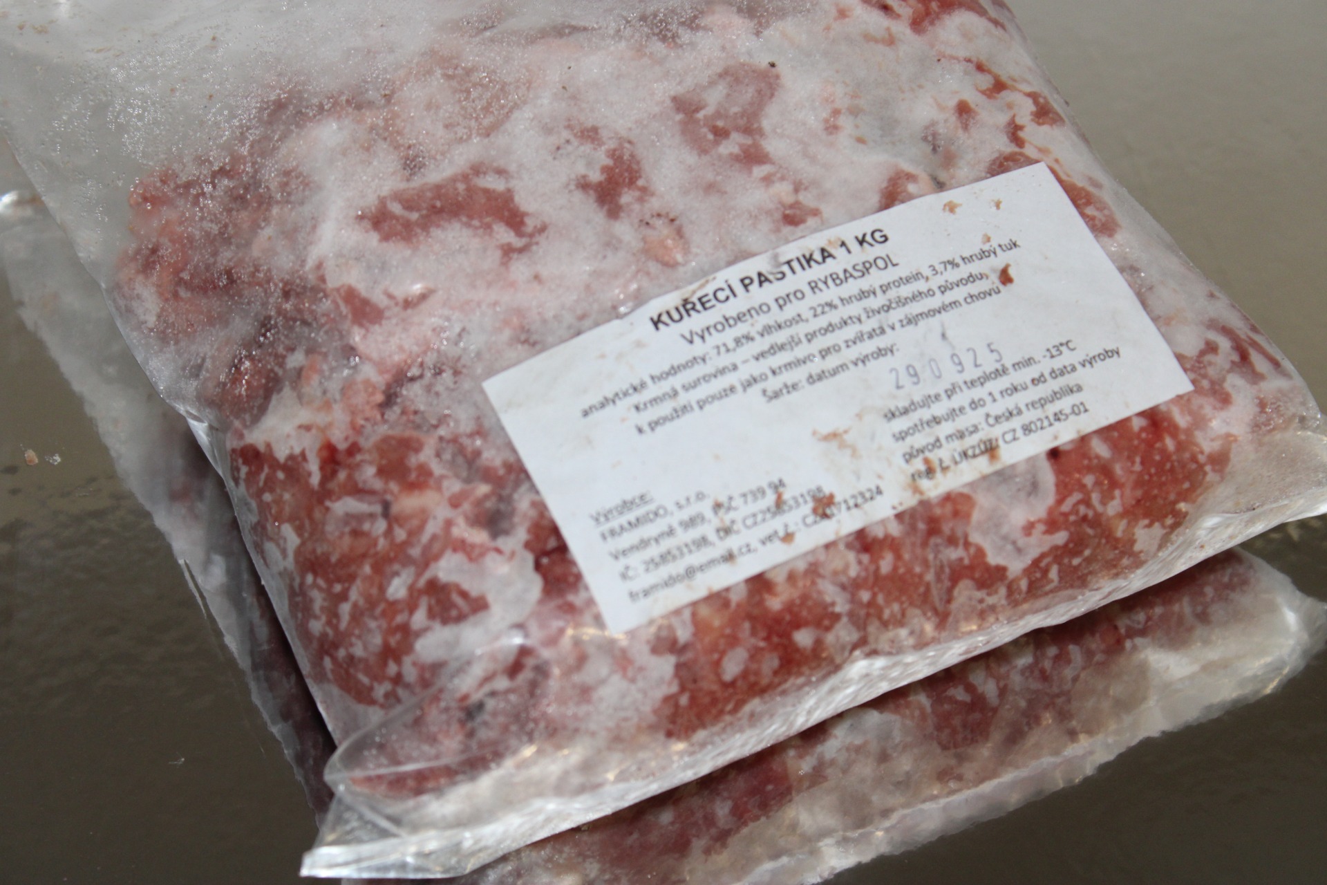 100% kuřecí jemně mleté, vhodné pro všechny masožravce v zájmovém chovu, vč. štěňat a koťat. Výrobce Framido