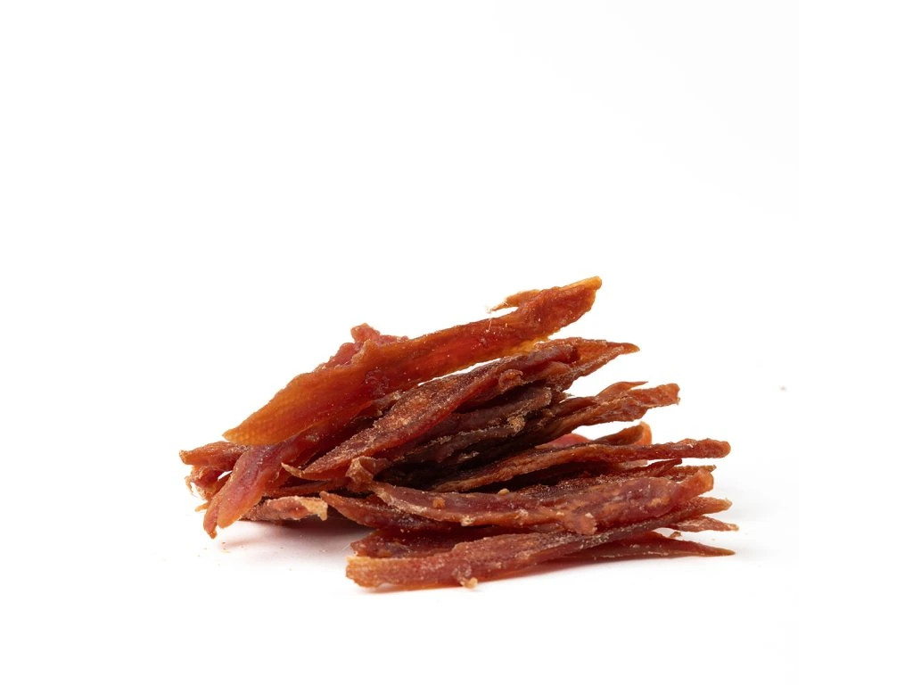Složení: kachní maso, škrob, sorbitol, glycerin. Analytické složky:hrubý protein 42 %, obsah tuku 1 %, hrubý popel 4 %, hrubá vláknina 2 %, vlhkost 23 %. Skladování: