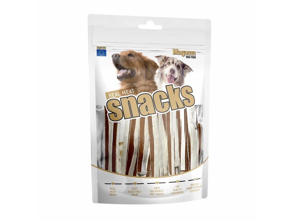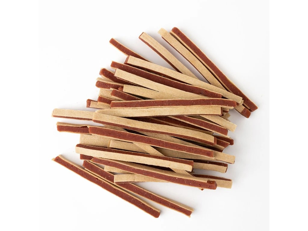 Měkká, přírodní masová pochoutka z kachního masa, formovaná do tenkých proužků, které se snadno dělí na menší kousky
