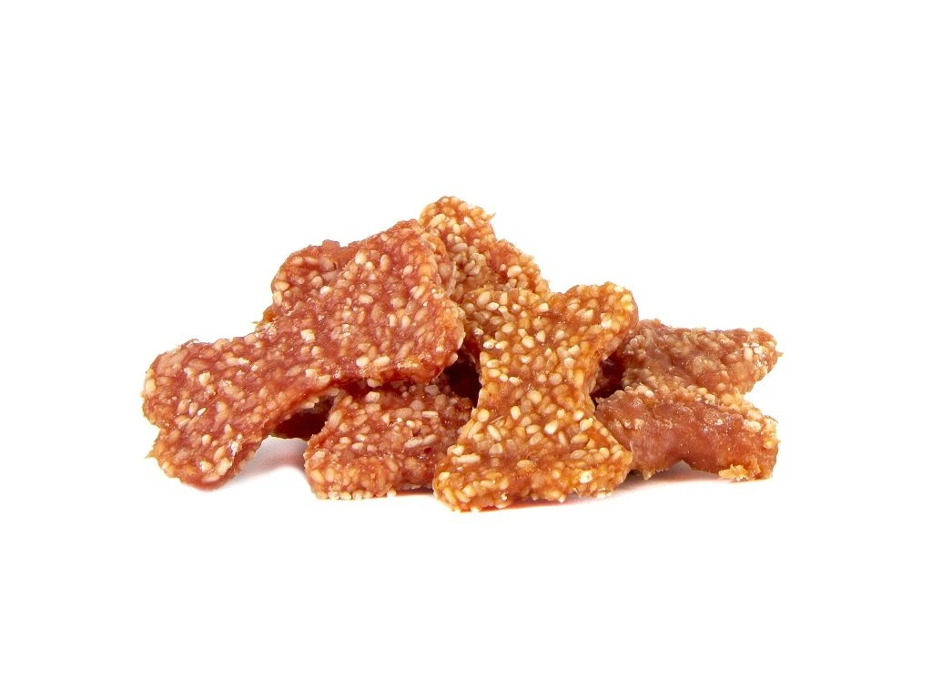 Měkká, přírodní masová pochoutka z jehněčího masa a rýže formovaná do kostiček.