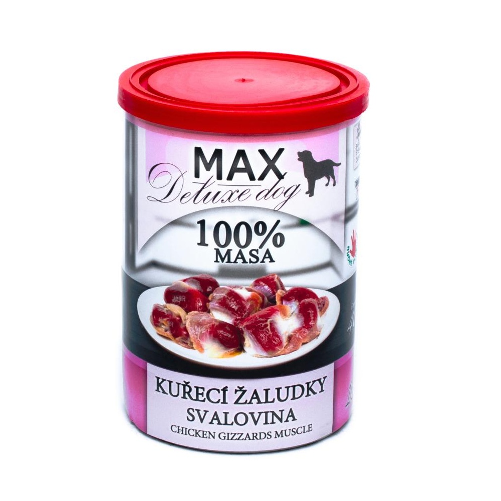 Nejlepší výběr kousků masa pro psy. Masová konzerva je naplněna ze 100 % svalovinou – kuřecími žaludky.