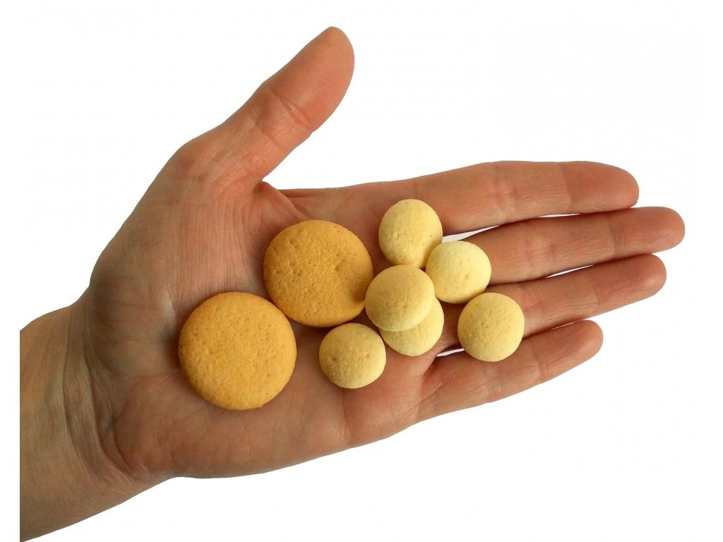 Dobře se dávkují z pamlskovníku, díky malé velikosti jich můžete zkrmit více - perfektní pro výcvik. Piškoty obsahují vajíčka.