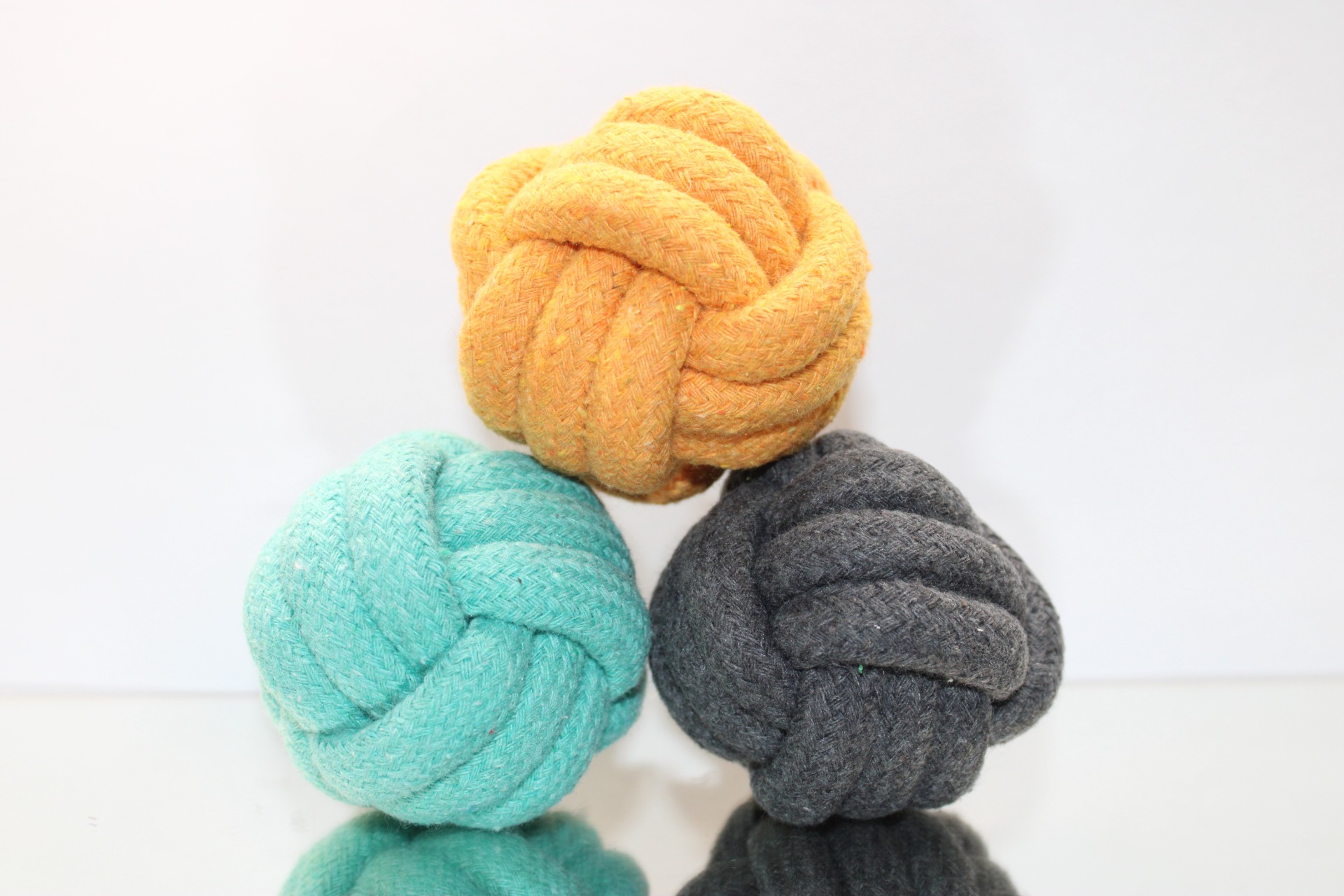 Odolné lano míčky pro psy - Vícebarevná tkaná hračka s uzlem (Šedá, zelená,oranžová) - Odolné žvýkací hračky pro štěňata při prořezávání zubů, aportování a přetahování.