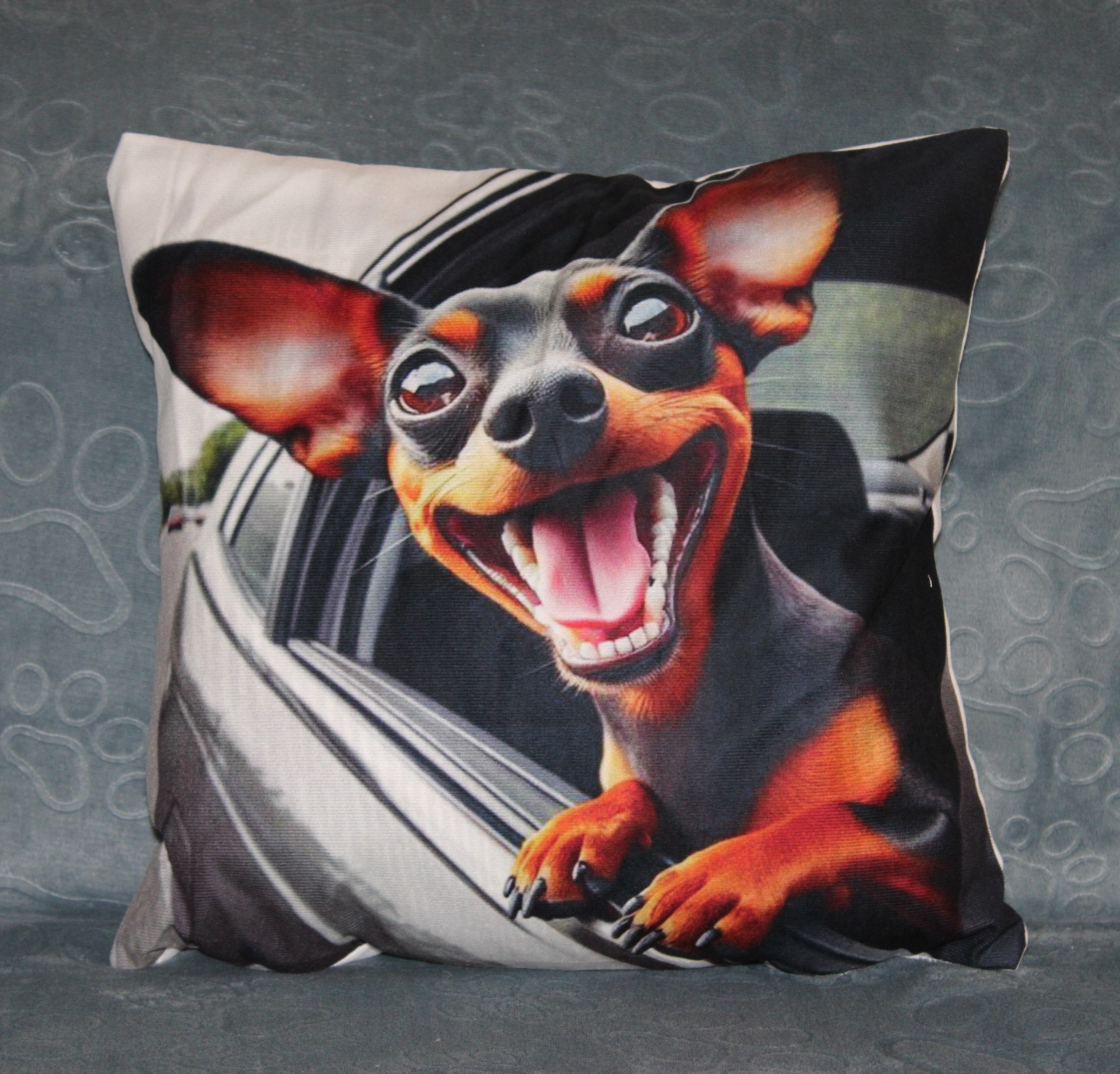 Roztomilý polštářek o velikosti 40x40cm, obal pratelný na 40°C. Uvnitř duté vlákno. Materiál 100% polyester.