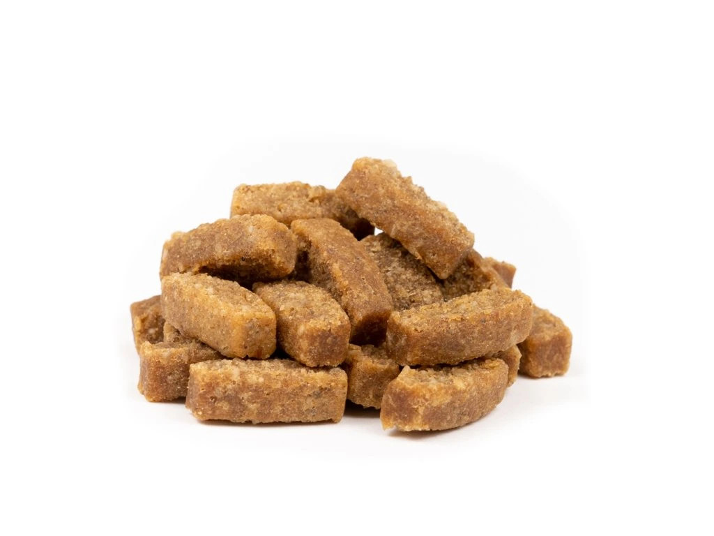 Poloměkký pamlsek bez obsahu obilovin je vhodný pro psy všech plemen (doplněk stravy). Pamlsek za odměnu.